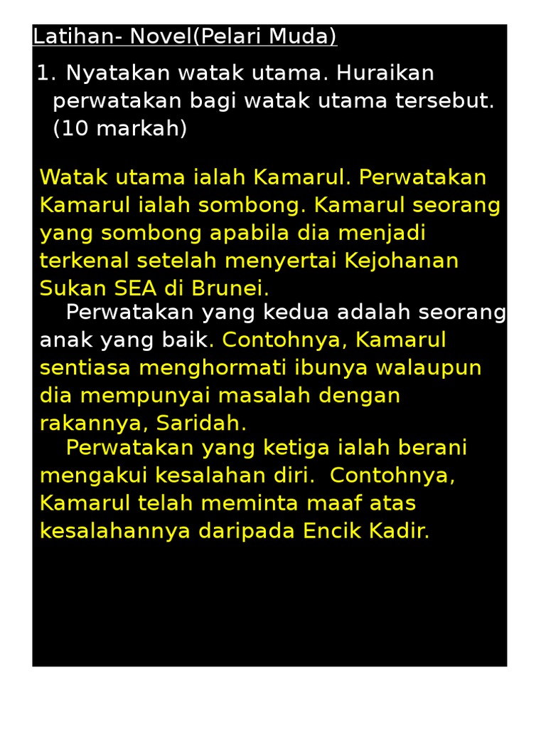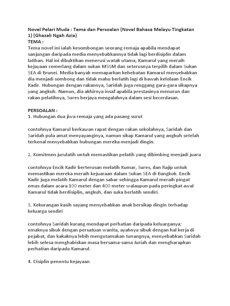 Berdasarkan novel pelari muda, nyatakan 3 persoalan yang terdapat dalam novel tersebut. Contohnya kamarul diduga dengan cabaran berat dalam hidupnya setelah dia menjadi terkenal kerana memenangi pingat emas dalam sukan se<b> di !runei. Read reviews from world's largest community for readers. Sures semakin pantas memecut bagaikan seekor kuda liar yang dipacu. Negeri perlis, kedah, pulau pinang, dan perak. Oleh sebab berita dan gambarnya kerap disiarkan dalam televisyen dan akhbar maka kamarul mula bersikap angkuh. Pantun alam remaja komsas tingkatan 2 keynote. Read and download free telugu books, novels and stories pdf, telugu novel free download, telugu romantic novel, love story, telugu navalkatha and collection of many telugu books for free. Thanks for telling us about the problem. Pelari muda tingkatan 1 book. ☺ dikarenakan banyak yang request teruntuk kalian yang masih bingung cara download novel pdf di (download novel populer pdf mudah dan gratis) silakan baca tips ini sampai s. Kepimpinan yang bertanggungjawab ini akan melahirkan hubungan erat antara pemimpin dengan rakyat. Kali ini kita punya koleksi baru buku novel komet pdf karya bang tere.